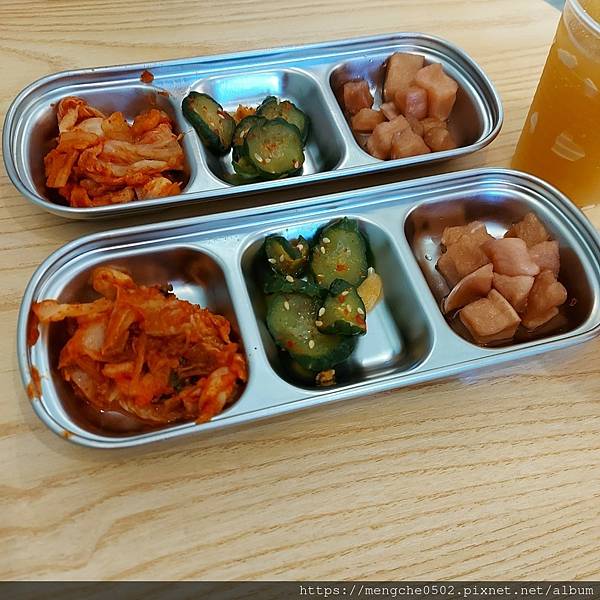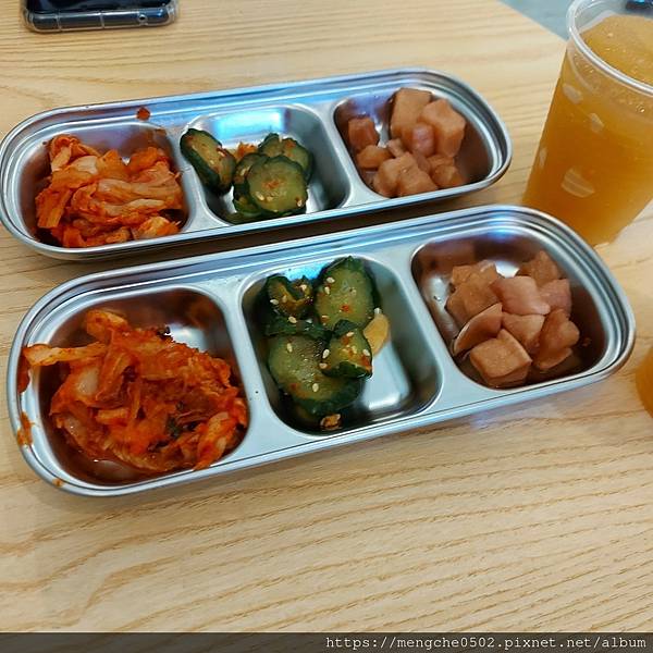 拔絲地瓜美味的令人驚嘆!是非常完美的開胃菜,小菜的部分服務人員會幫你送上有飲料小黃瓜醃蘿蔔和泡菜,是有點偏韓式的口味。