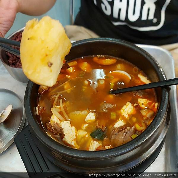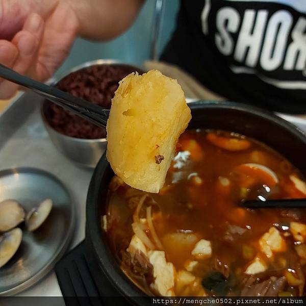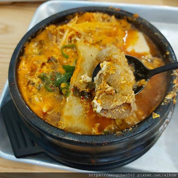 這道豆腐煲的命名跟做法感覺就很接近韓國人在吃的,比較少見所以也很令人期待,湯頭非常的鮮美又帶有一點啦,整顆馬鈴薯給的非常有誠意非常適合喜歡吃馬鈴薯的人,真的是我少數喝過的美味湯頭!
